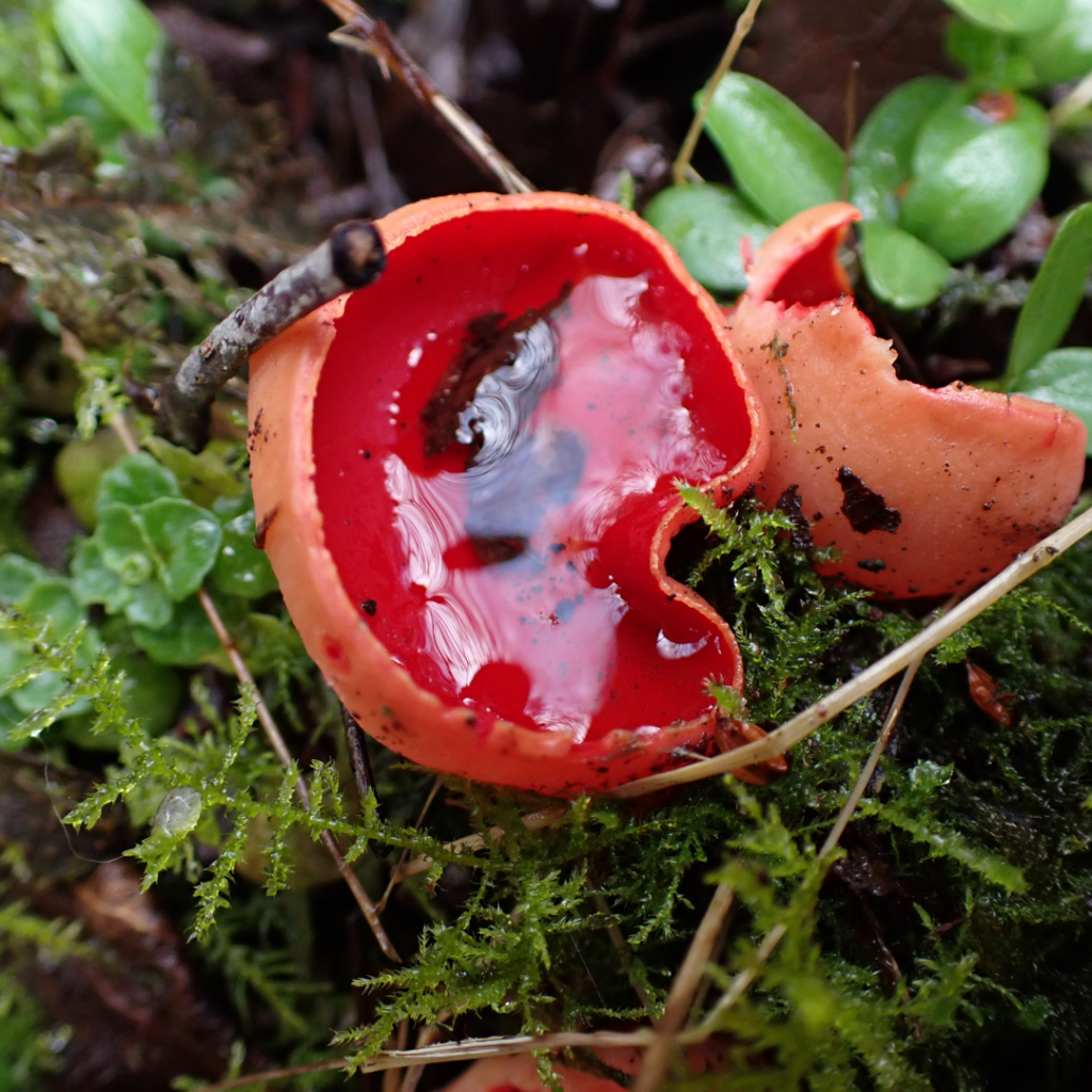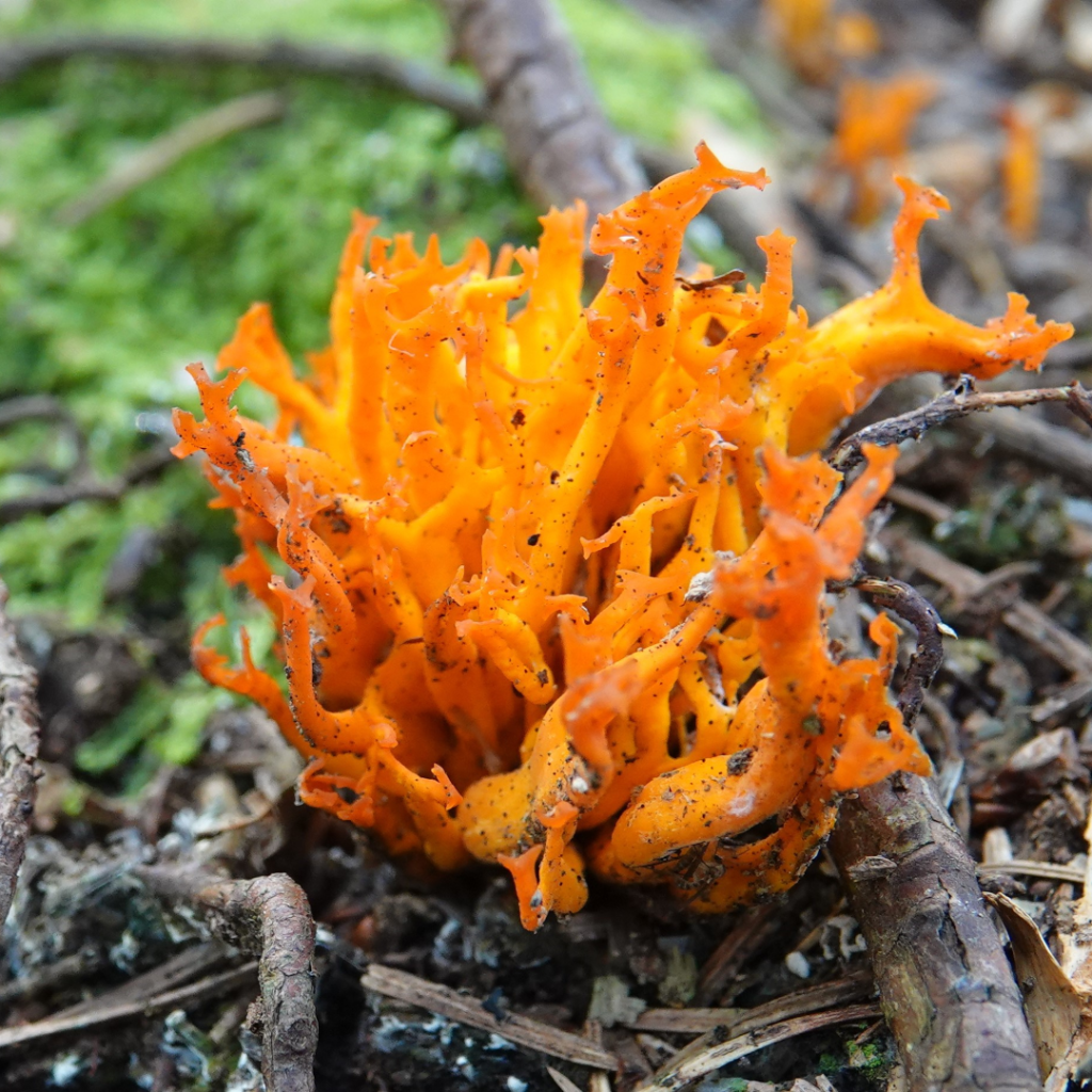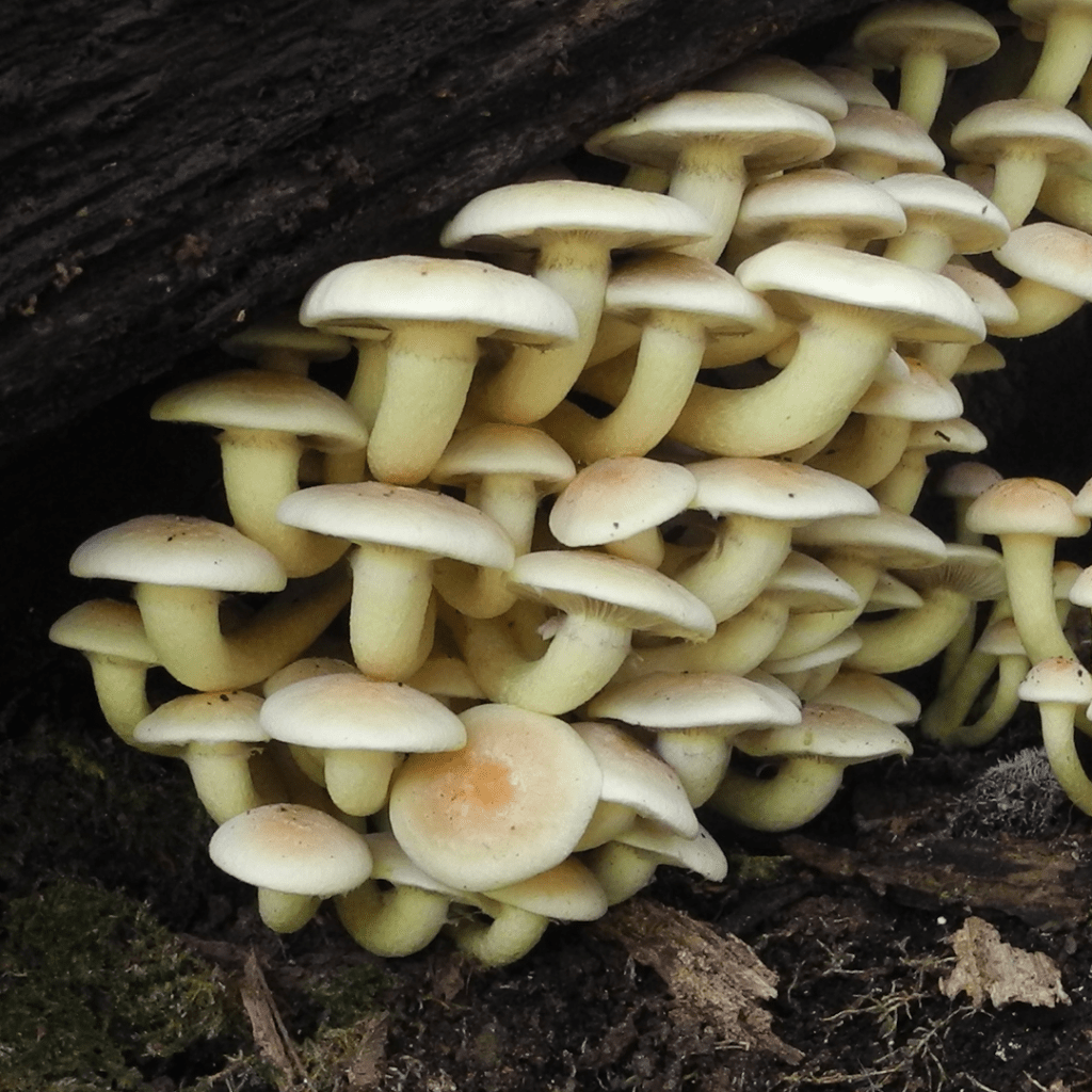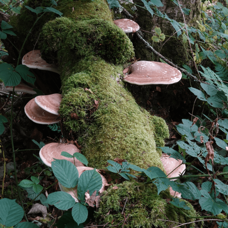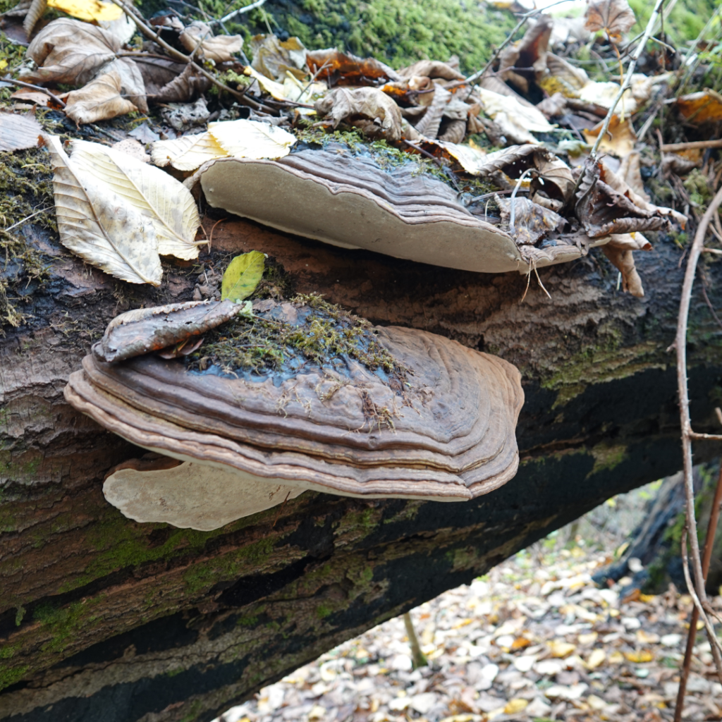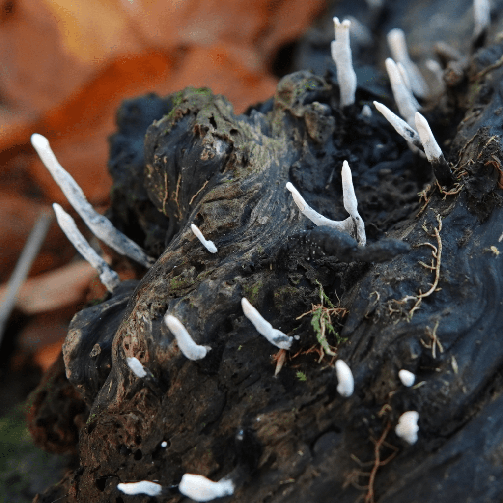 Shaggy Ink Cap also known as Lawyers WigPuffballsPorcelain Fungus Hedgehog FungusStagshornBirch PolyporeBracket FungiSulphur TuftSlug devouring a fungusOrange PeelElf CupBrown MushroomsThe underside of a gilled mushroomCandle SnuffHare’s EarsTurkeytailAmethyst Deceiver